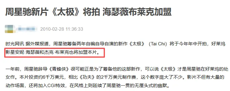 甚至在15年前,还曾传出《太极》将有安妮·海瑟薇和杰克·布莱克两位顶级大咖加盟。